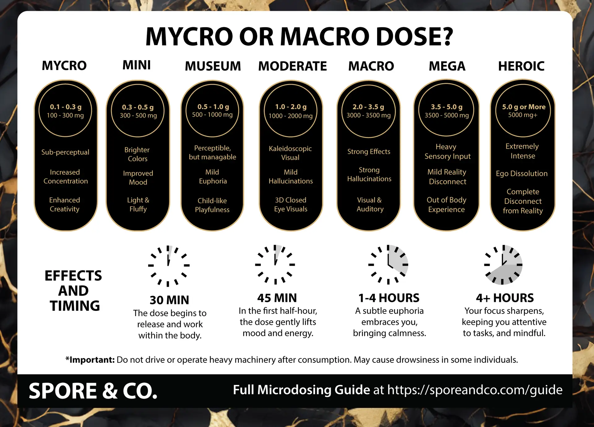 Some users may take upwards of 5 or more grams in one sitting known as a “Hero dose”, though we don’t recommend that to anyone who is new to psychedelics, as many adverse outcomes may occur if not done in a safe set and setting, with preparation, intention and an experienced guide.